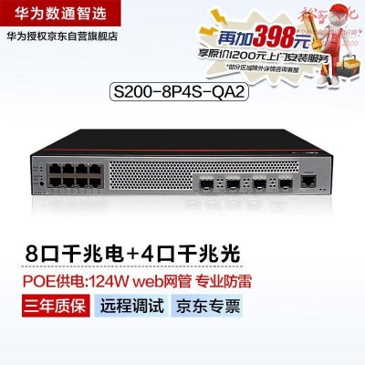 华为数通智选8口千兆POE交换机S200-8P4S-QA2 POE供电8电4光口vlan网管汇聚网络网线分线器集线器 SKU:yzwhyp1030077