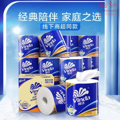 维达(Vinda)有芯卷纸 蓝色经典4层140克*27卷 厚韧耐用 纸巾 大分量纸巾整箱SKU:yzwhyp1030109