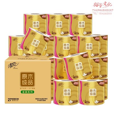清风有芯卷纸 原木金装 4层加厚140克*27卷 卫生纸卷筒纸纸巾 整箱SKU:yzwhyp1030112