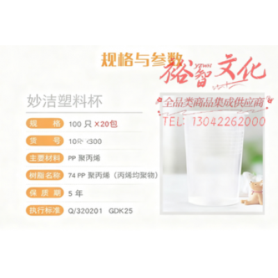 妙洁 一次性杯子 箱装20包 240ml*100只装 塑料中号航空杯SKU:yzwhyp1030198 - 天津市裕智文化用品销售有限公司