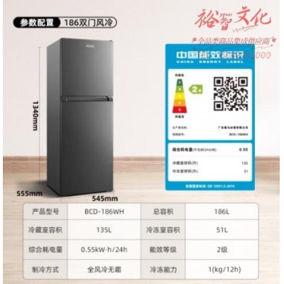 奥马(Homa) 186升 风冷无霜双开门冰箱 省电环保冷藏冷冻两门双门小型家用复古电冰箱 租房宿舍办公BCD-186WHSKU:yzwhyp1030347