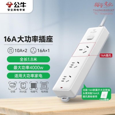 公牛 GN-406D 大功率16A空调电源插座 3位总控全长1.8米SKU:yzwhyp1030561