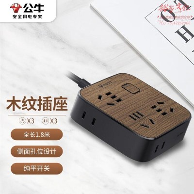 公牛 GN-R3330 新国标电源插座/插线板/插排/排插/接线板/拖线板 6位总控1.8米 黑色木纹SKU:yzwhyp1030707