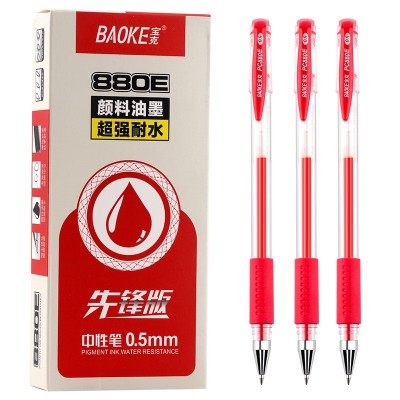 宝克(BAOKE)PC880E 0.5mm子弹头中性笔 办公水笔签字笔 红色 12支/盒