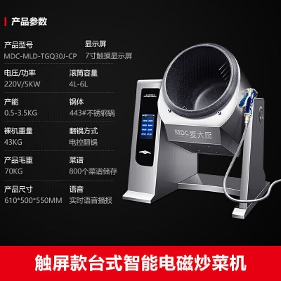 麦大厨 MDC-MLD-TGQ30J-CP 自动炒菜机商用多功能台式智能电磁滚筒炒菜机器人双区域加热语音播报触屏款SKU:yzwhyp1031258