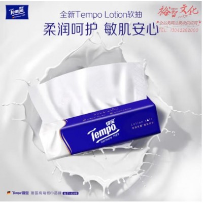 得宝(TEMPO)一博同款 乳霜纸 Lotion4层70抽*4包 保湿婴儿纸巾 抽纸SKU:yzwhyp1031387