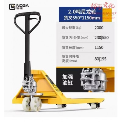 诺佳 叉车手动液压搬运车 2吨/外宽550 叉长1150/尼龙轮/AC整体油缸 地牛叉车SKU:yzwhyp1032010
