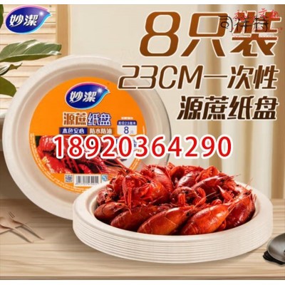 妙洁 一次性盘子 8只装 源蔗纸盘 本色安心 盒饭盘碗筷厨房餐具烧烤碟SKU:SXT10015907SKU:yzwhyp1032117