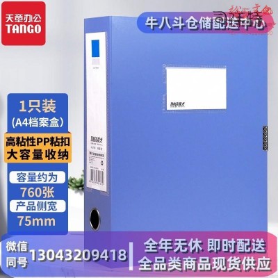 天章办公(TANGO)档案盒A4文件盒75mmPP粘扣资料盒蓝色加厚人事财务凭证收纳盒1只装SKU:SXT10016049SKU:yzwhyp1032301