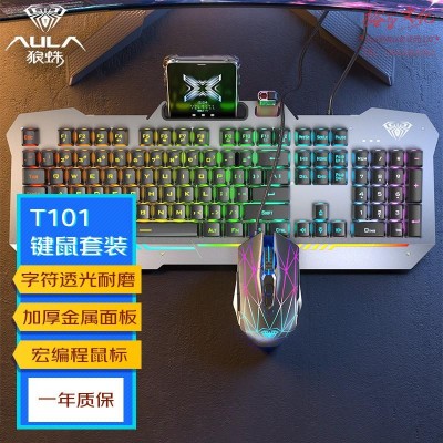 狼蛛(AULA)T101真机械手感键盘鼠标套装 有线键鼠套装 游戏办公电脑键盘 冰蓝光 吃鸡套装 金属面板 黑SKU:yzwhyp1032326
