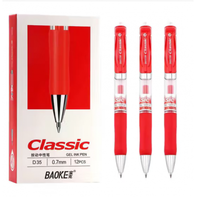 宝克PC1912按动中性笔黑色0.7MM水性笔子弹头按压签字笔蓝色红色 红色 12支/盒
