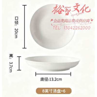 洁雅杰陶瓷盘家用白盘子8英寸中式釉下彩深盘菜盘陶瓷汤盘4只装中华圆盘SKU:yzwhyp1032486