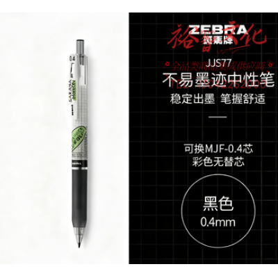 斑马牌(ZEBRA)学霸系列中性笔 0.4mm子弹头按压签字笔 学生用刷题笔标注笔 JJS77 黑色 单支装SKU:yzwhyp1032490