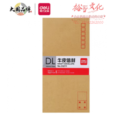 得力(deli)60张5号牛皮纸信封 邮局标准信封220*110mm 33211 SKU:yzwhyp1033038