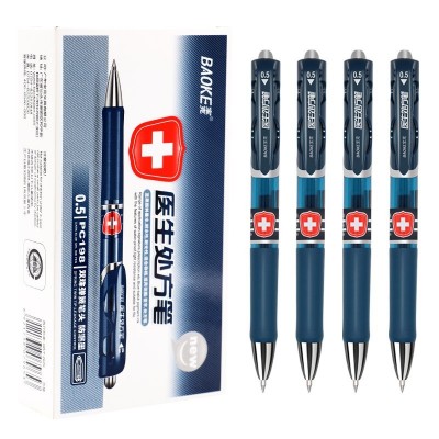 宝克(BAOKE) PC198 0.5mm蓝黑色按压式中性笔 签名笔 水笔 12支/盒