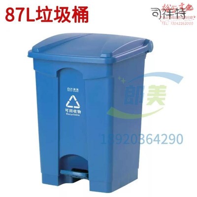 蓝色87L大号脚踏式垃圾桶带盖厨房酒店商用大容量垃圾箱白云脚踩式收集桶SKU:SXT10017144SKU:yzwhyp1033359