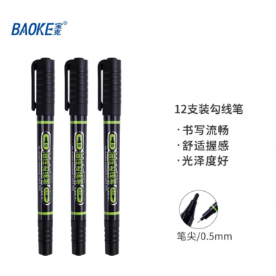 宝克(BAOKE) 油性美术勾线笔 大小双头防水速干油性记号笔 会议签字笔 学习标记笔 学生美术绘画 0.5/2.0mm 黑色 12支/盒 MP2915