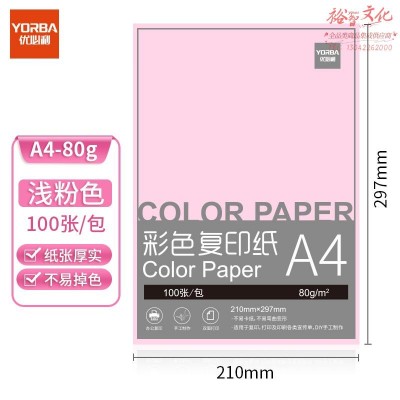 优必利 A4彩色打印纸 DIY手工折纸 80g彩纸约100张/包 7051浅粉色SKU:yzwhyp1034373