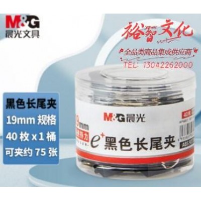 晨光ABS92736 Eplus黑色长尾夹19mm 40枚/筒(筒装)SKU:yzwhyp1034413