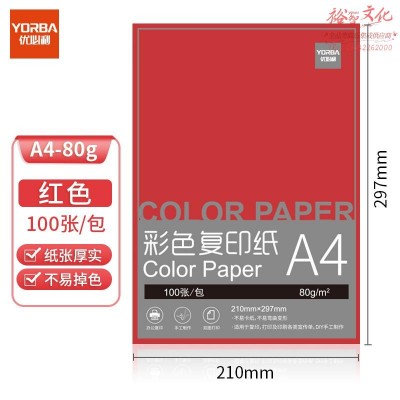 优必利 A4彩色打印纸 DIY手工折纸 80g彩纸约100张/包 7052大红色SKU:yzwhyp1034510