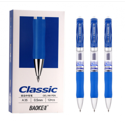 宝克(BAOKE)PC1911蓝色0.5mm按动中性笔 子弹头水笔 签字笔 12支/盒