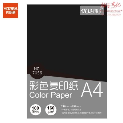 优必利 A4彩色打印纸 DIY手工折纸 160g彩纸约100张/包 7056黑色SKU:yzwhyp1034659