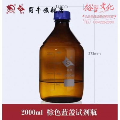 蜀牛 玻璃蓝盖试剂瓶GL45螺口试剂瓶丝口瓶广口蓝盖瓶密封瓶 2000ml【棕色】 蓝盖试剂瓶 (SKU:yzwhyp1034946