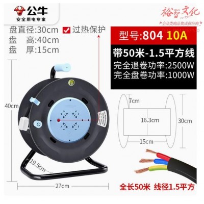 公牛移动线盘插座 【卷线盘】4插位 3X1.5平50米 过热保护 804SKU:yzwhyp1035153