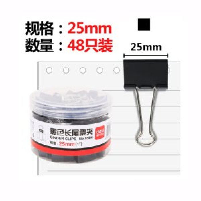 得力 DELI 8564 黑色长尾夹 25mm 48个/筒..SKU:yzwhyp1035607