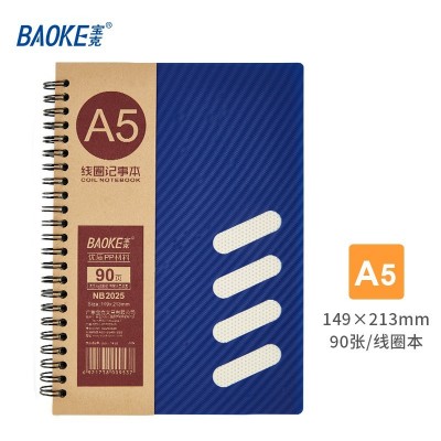 宝克(BAOKE) 商务笔记本子线圈本 螺旋硬抄记事本 加厚学生错题本阅读摘笔记簿 学习办公用品文具 A5 149×213mm NB2025