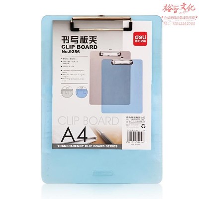得力9256 A4 夹板 透明书写板夹 (透明蓝)SKU:yzwhyp1036144