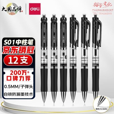 得力(deli)S01中性笔京东销冠中性笔签字笔 0.5mm子弹头经典办公按动笔水笔 黑色 12支/盒SKU:yzwhyp1036428