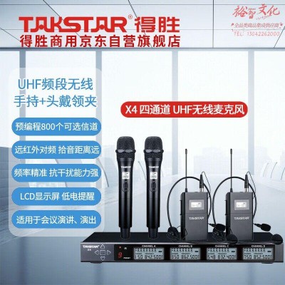 首页 > 广播、电视、电影设备 > 组合音像设备 > 会议、广播及音乐欣赏系统 > 得胜 (TAKSTAR)X4无线双领夹双手持套装 UHF无线一拖四 教室培训演播室会议演讲话筒麦克风 X4 X4-TL X4-TD SKU:yzwhyp1036652