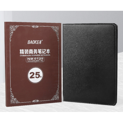 宝克(baoke) NB0125 PU优质皮革精装商务笔记本/记事本/记录本/日记本 143*205mm 80页 1本装 黑色
