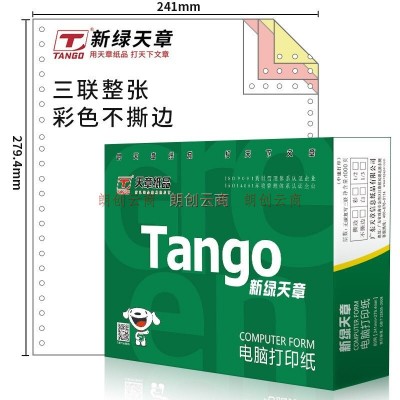 天章(TANGO)三联打 印 纸 彩色针 式三联打 印 纸(241-3 色序:白 红 黄 1000页/箱)