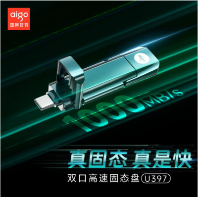 爱国者 固态U盘U397 USB3.2/Type-C双接口优盘读速1000MB/s写速900MB/s 1TB SKU:RX115066