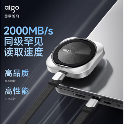 爱国者(aigo)2TB 磁吸式手机支架移动固态硬盘(PSSD)P5 USB3.2读速高达2000MB/S