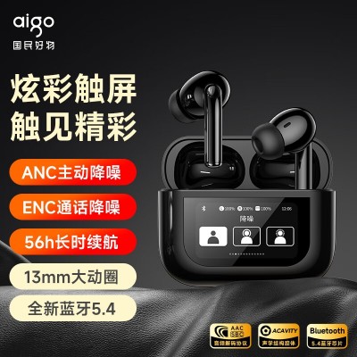 爱国者(aigo)蓝牙耳机真无线触屏 TWS主动降噪耳机 高清通话入耳式耳机 运动商务耳机 智能版黑色