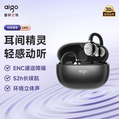 爱国者(aigo)蓝牙耳机骨传导概念耳夹开放式真无线不入耳运动跑步降噪耳麦 CA05黑