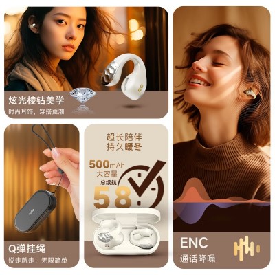 爱国者(aigo)蓝牙耳机TWS真无线骨传导概念气传导耳机耳夹开放式不入耳 运动通话降噪SA03米色