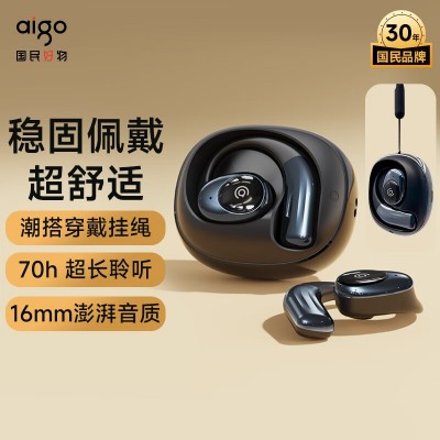 爱国者(aigo)蓝牙耳机挂耳式骨传导概念 气传导耳机 真无线不入耳运动跑步耳机长续航 SK03黑色