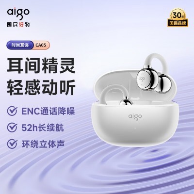 爱国者(aigo)蓝牙耳机骨传导概念耳夹开放式真无线不入耳运动跑步降噪耳麦 CA05白
