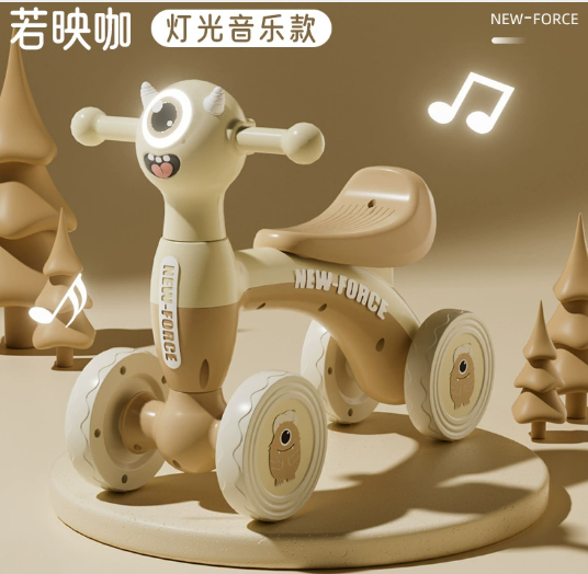巨联/JULIAN 儿童平衡车1-3岁小孩无脚踏溜溜车滑步车婴儿学步四轮宝宝滑行车 灯光音乐款 绿/咖/粉 (下单备注颜色)