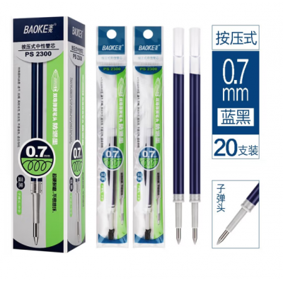 宝克(BAOKE)按动中性笔 签字笔 处方笔0.7mm办公书写使用 0.7mm蓝黑笔芯20支-PS2300