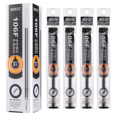宝克(BAOKE)PS106笔芯中性笔芯 商务办公水笔替芯 通用学生考试水笔芯 学习办公用品文具 20支0.5黑 PS106F