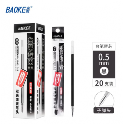 宝克(BAOKE) 笔芯 中性笔芯0.5mm台笔笔芯 黑色学生水笔替芯 柜台笔替芯 文具 20支/盒实惠装 PS2240