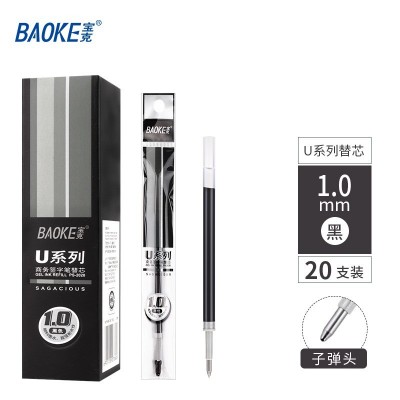 宝克(BAOKE) 黑色中性笔笔芯 商务签字笔水笔替芯(适用于U系列) 办公用品 文具 1.0mm黑色20支
