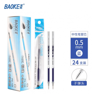 宝克(BAOKE)PS106笔芯中性笔芯 商务办公水笔替芯 通用学生考试水笔芯 学习办公用品文具 24支 0.5蓝 PS106