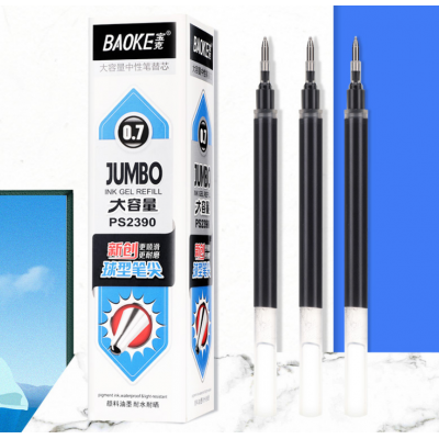 宝克(baoke) PS2390 球形笔尖大容量中性笔芯 学生用品/商务办公替芯 0.7mm 12支装 黑色