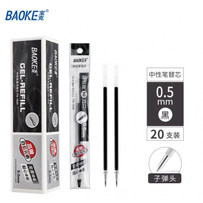 宝克(BAOKE)PS106笔芯中性笔芯 商务办公水笔替芯 通用学生考试水笔芯 学习办公用品文具 20支 0.5 蓝色